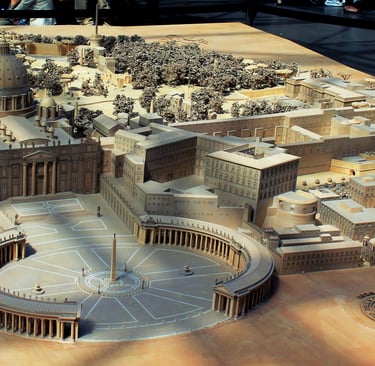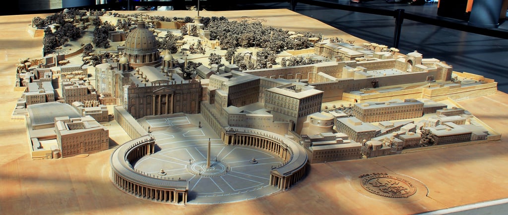 Maquete da Basílica de São Pedro: No século XVI, a maquete projetada por Michelangelo e outros arquitetos foi crucial para o planejamento e construção da Basílica de São Pedro, um dos maiores e mais emblemáticos edifícios religiosos do mundo.
